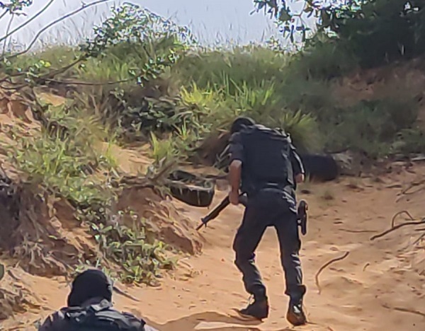 Segundo informações da Polícia Militar, o caso aconteceu por volta das 14h15. Durante uma abordagem realizada no bairro, os policiais identificaram 10 homens que estavam em posse de gasolina e armas longas nas proximidades de um morro da região. Com isso, os criminosos atiraram e ocorreu um confronto. Após a troca de tiros, os homens fugiram em direção ao morro.