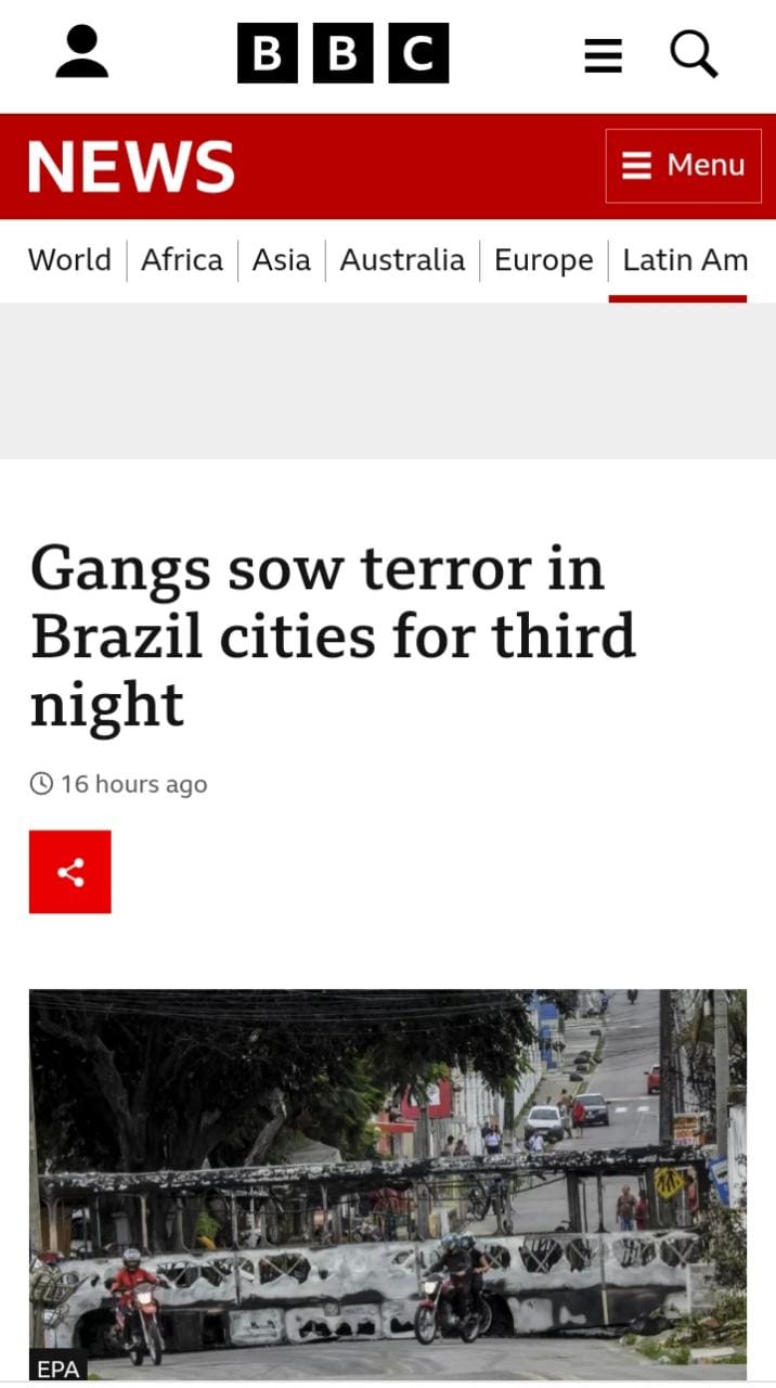 Reportagem da rede britânica BBC abordou os ataques criminosos que acontecem em dezenas de cidades do Rio Grande do Norte, contra veículos e prédios públicos, desde o início da semana.