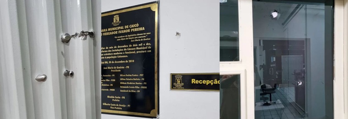 Elementos armados dispararam pelo menos cinco vezes contra o prédio da Câmara Municipal de Caicó. O crime ocorreu por volta das 21h30min dessa quarta feira. As ruas da cidades estão patrulhadas por homens da BPAmb, CIPRV, Rádio Patrulha, Cavalaria, GTO e militares de reforço operacional.