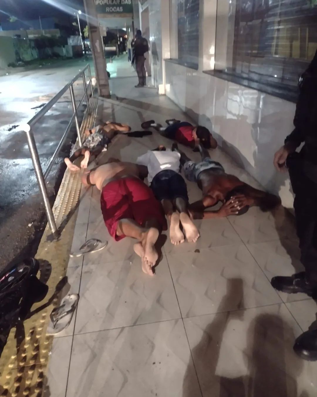 De imediato policiais da FORÇA TÁTICA DO 1⁰ BPM prenderam vários criminosos, entre homens e mulheres na ação, recuperaram produtos e conduziram todos para a delegacia.