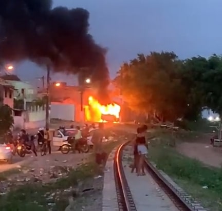 Um micro-ônibus da Jardinense está em chamas na Cidade da Esperança, próximo ao Detran/RN. As ações incendiárias continuam pela cidade, apesar do reforço na segurança.