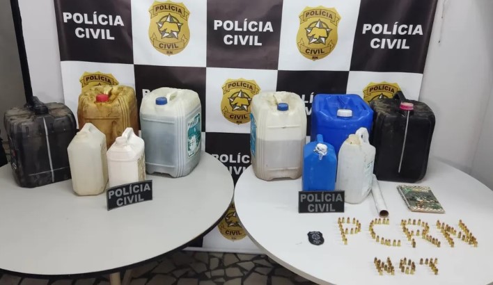 A Polícia Civil apreendeu nesta quarta-feira (15) cerca de 80 litros de gasolina e 113 munições de armas escondidos em um lava a jato em Mossoró, na Região Oeste do Rio Grande do Norte.