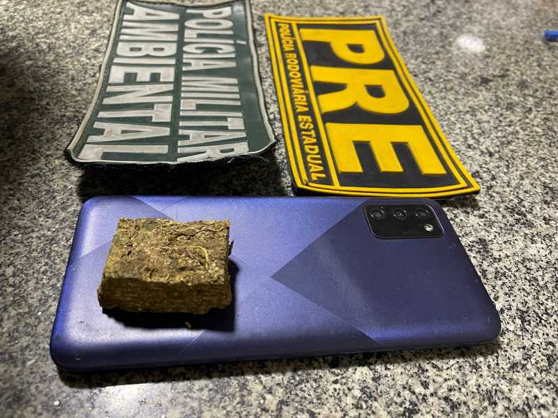 Em patrulhamento de enfrentamento ao crime organizado, nessa madrugada, a Polícia Rodoviária Estadual, com apoio da Polícia Ambiental (BPAmb) conduziram um suspeito na posse de um tablete de maconha no bairro Paulo VI, zona oeste da cidade.