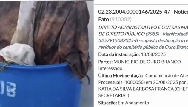 O Ministério Público do Rio Grande do Norte (MPRN) instaurou a Notícia de Fato nº 02.23.2004.0000146/2025-47 para investigar denúncia de suposta destinação irregular de resíduos provenientes do cemitério público municipal de Ouro Branco.