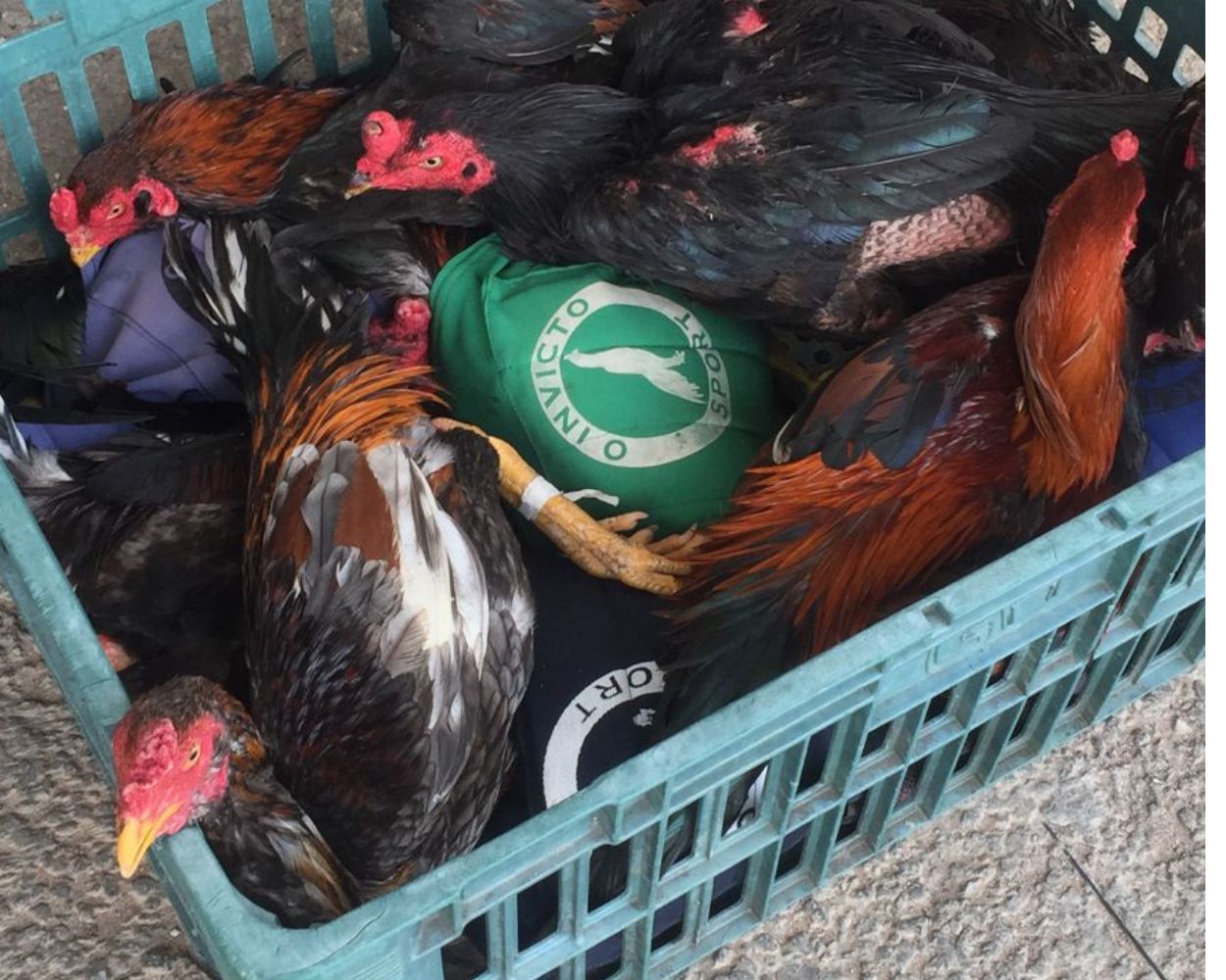 Embora os suspeitos tenham negado que estavam promovendo uma competição, a polícia constatou que a estrutura para a prática de rinhas estava montada na residência. Além disso, alguns dos galos estavam usando uma capa de proteção para acalmar os animais.