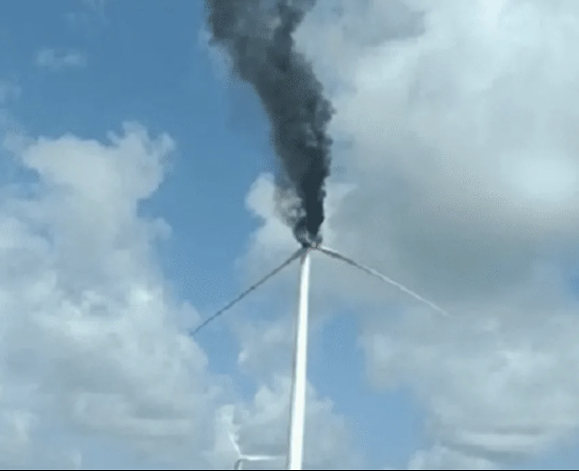 Uma torre eólica pegou fogo no Parque Eólico Arizona, que fica localizado na cidade de Rio do Fogo, no litoral Norte do Rio Grande do Norte. O incêndio aconteceu na tarde desta quarta-feira (22) e ninguém ficou ferido.