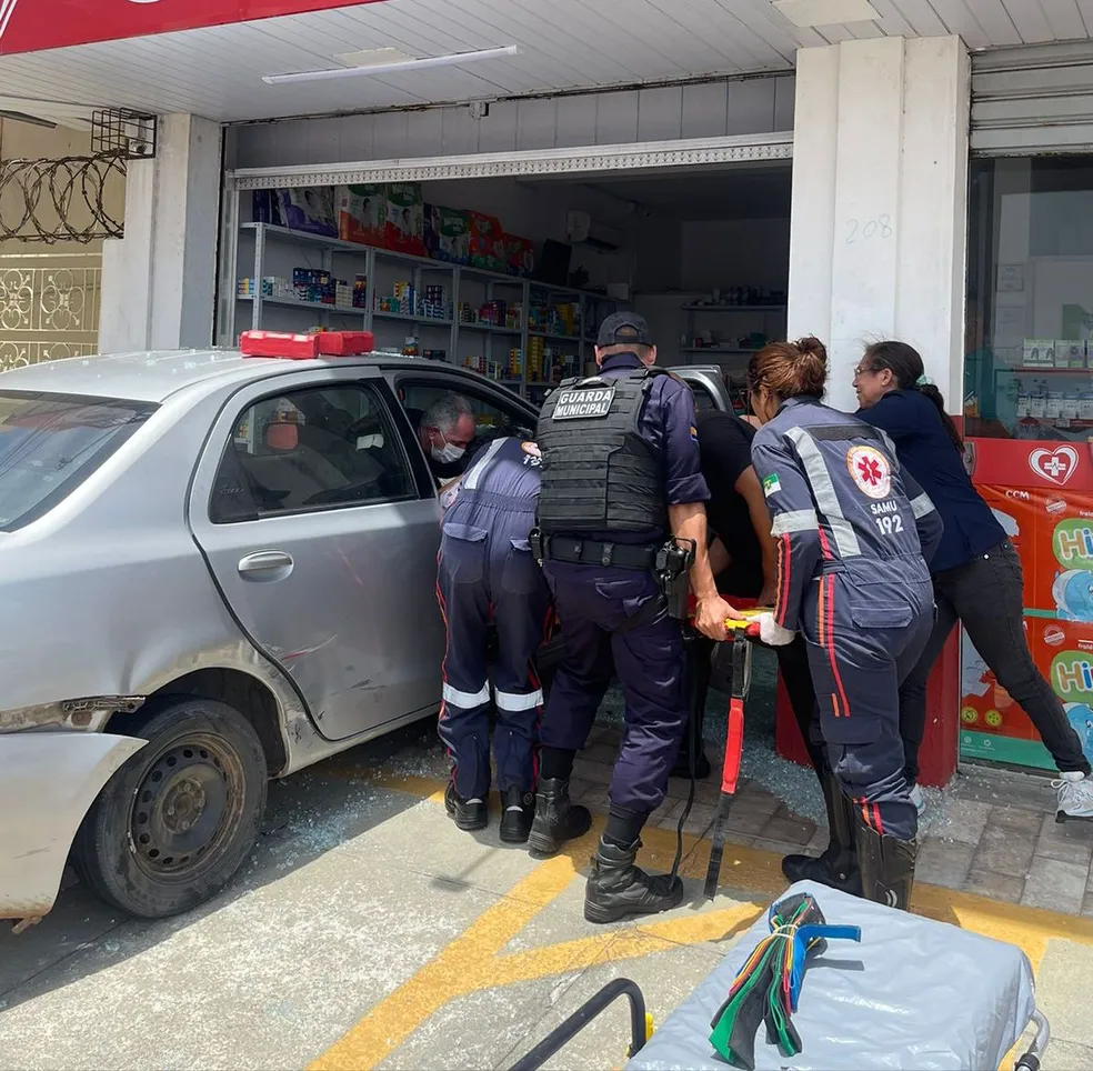 Um carro se envolveu em um acidente e invadiu uma farmácia localizada no bairro Boa Esperança, em Parnamirim, na Grande Natal, na manhã desta terça-feira (14).