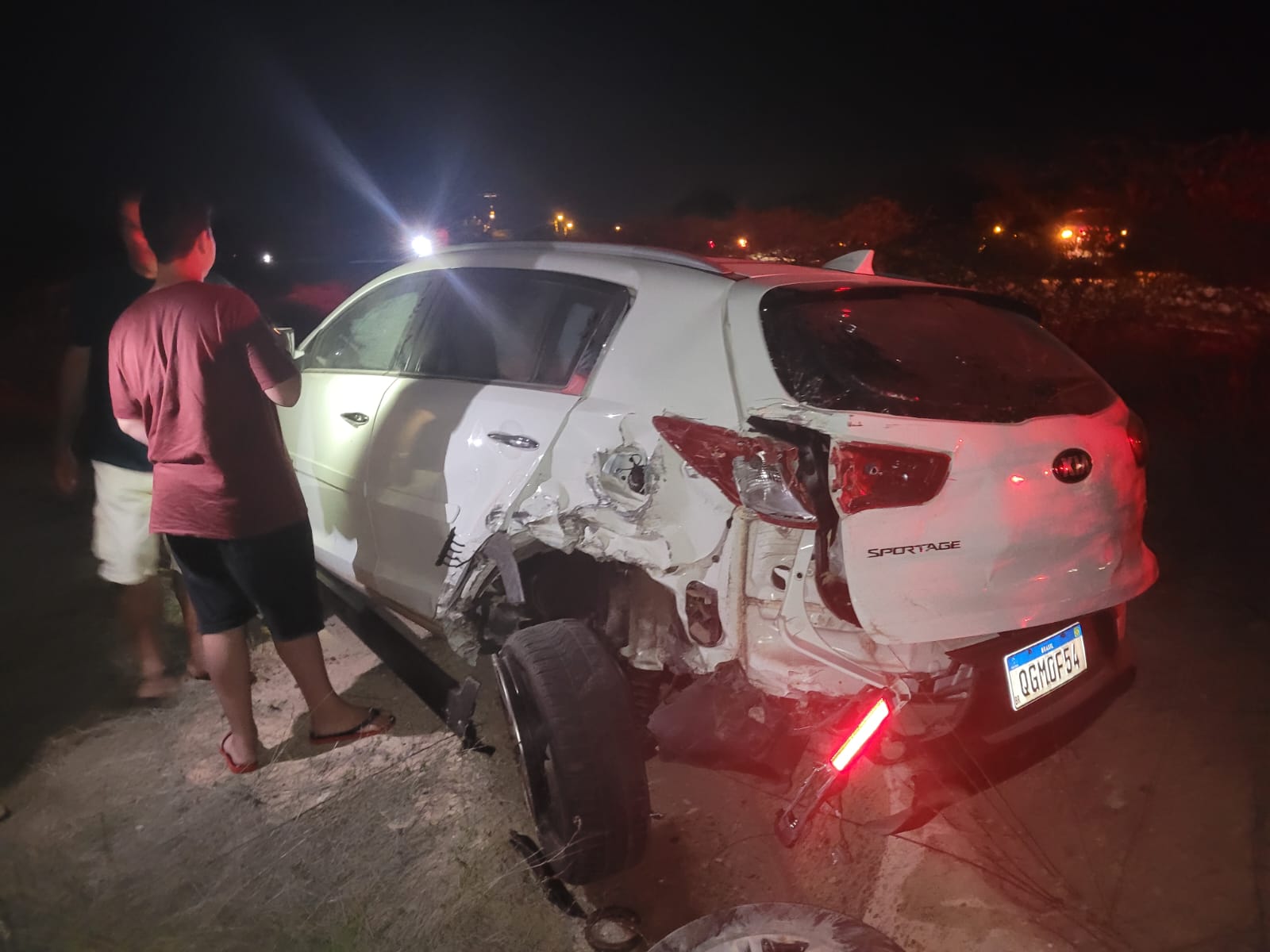Já o Kia Spotage, transportava uma idosa e seu filho, que fez o teste do bafômetro e nada foi constatado. Com a colisão, o Kia Sportage teve o seu eixo traseiro quebrado e acabou descendo o acostamento da estrada, dando perda total ao veículo.