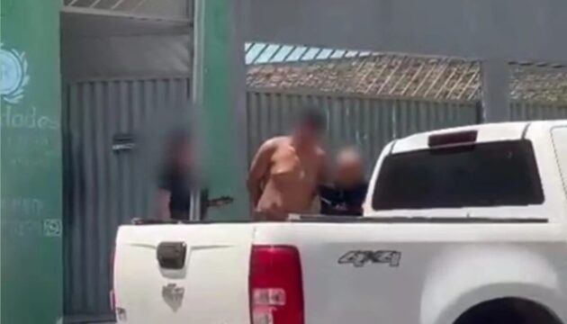Em seguida, a moça avista a viatura policial chegar e, em momento de distração do sequ3strador, que chega a retornar ao veículo, corre em direção aos agentes.