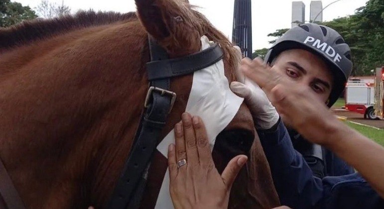 Durante as invasões por manifestantes extremistas de prédios públicos na Esplanada dos Ministérios, em Brasília, cavalos que atuavam para conter os atos de vandalismo foram atacados junto com os policiais militares. A imagem de um animal sendo socorrido tem repercutido nas redes sociais e gerou comoção e revolta.