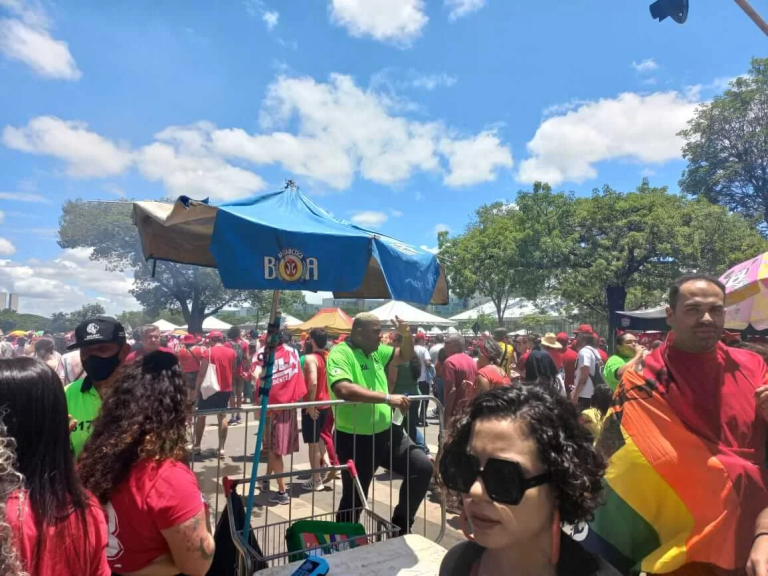 Entre a Rodoviária do Planalto, bem na região central de Brasília, e a área do palco onde artistas se apresentam ao longo do dia, no início da tarde praticamente não bloqueios rigorosos.