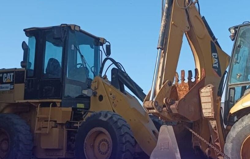 Ao chegar no local, foram encontradas: uma retroescavadeira, modelo 416E, ano 2010, marca caterpillar e uma pá carregadeira, marca caterpillar, modelo 924h, ano 2009.