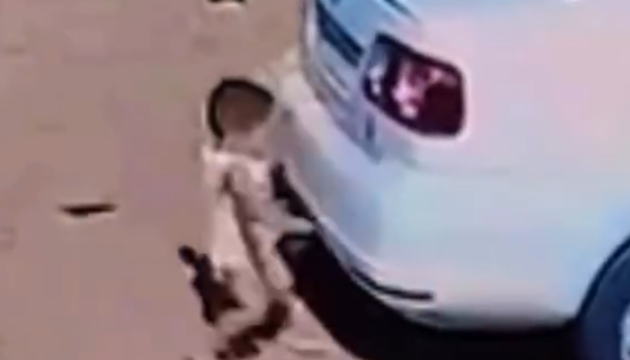 Imagens de uma câmera de segurança registraram toda a cena. Nas gravações, é possível ver o momento em que a criança é atingida e fica sob o carro.