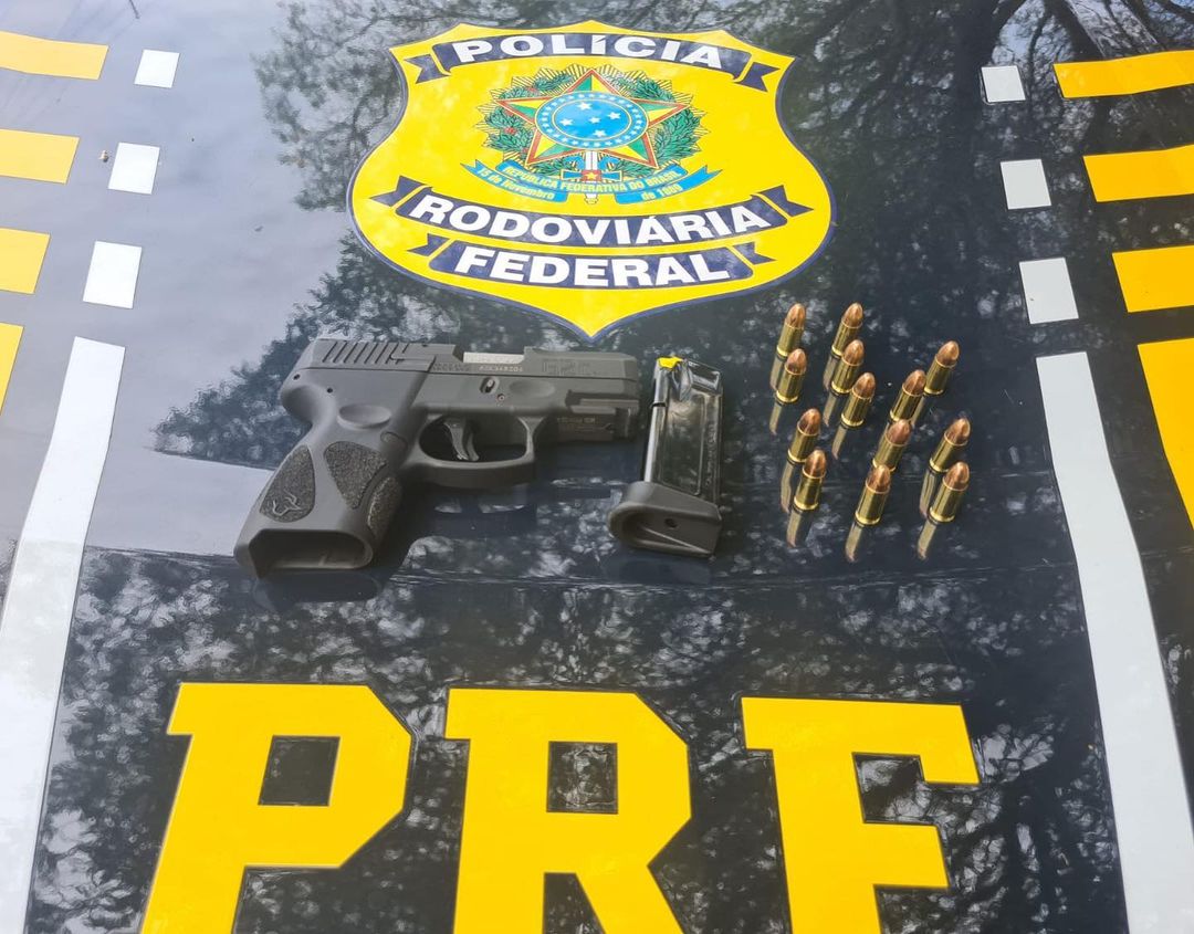 Em Mossoró/RN, no km 57 da BR 304, às 08h40 do dia 29/12/2021, foi preso um homem, de 48 anos, condutor do veículo MMC L200 TRITON GLX, por portar uma arma de fogo, do pistola, marca Taurus, modelo PT111G2C, calibre 9mm, com 13 munições intactas.