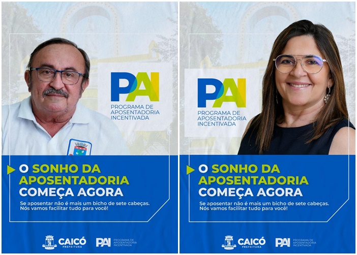 A Prefeitura Municipal de Caicó lança o Programa de Aposentadoria Incentivada. Desta forma, reconhece toda dedicação de seus servidores municipais aptos para receberem o benefício. São mais direitos, mais oportunidades e mais agilidade no processo.