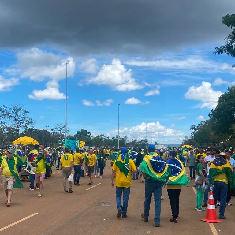Por volta das 10h, o movimento começou a tomar mais corpo. Ao longo do caminho do Eixo Monumental até o QG, os manifestantes fazem protestos de cunho golpista. Além de não reconhecer a derrota de Bolsonaro nas urnas, o grupo pede intervenção militar.Concentrados desde a derrota do presidente nas urnas, os manifestantes pró-Bolsonaro ficaram sem luz na noite desta segunda-feira (14), após as chuvas. O acampamento conta com carros, caminhões, ônibus e barracas na Praça dos Cristais, no Setor Militar Urbano, bem em frente ao Quartel General da Força.