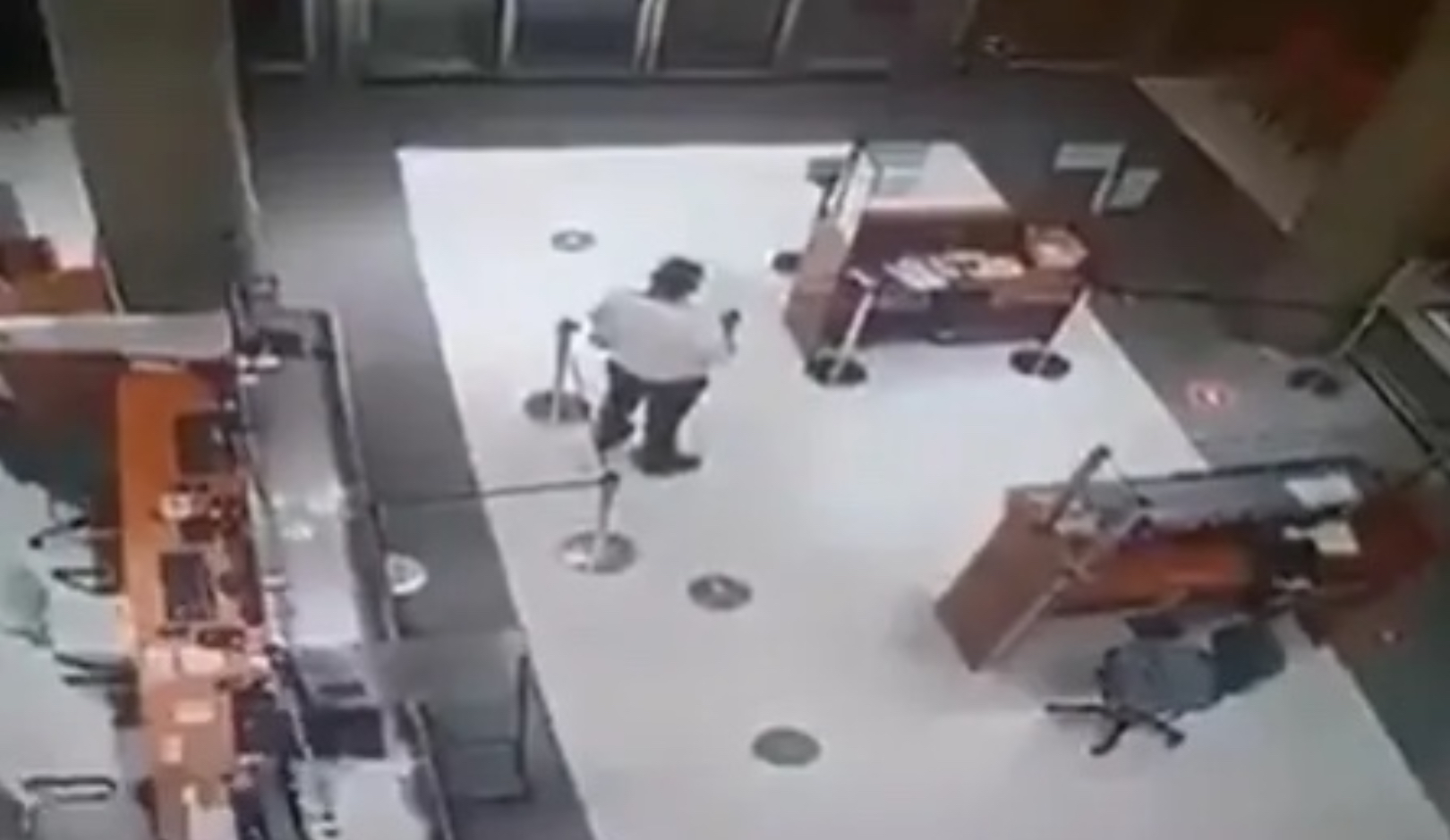 Nas imagens, a porta do edifício é aberta. Na sequência, o funcionário se levanta com uma prancheta e “colhe” os dados de… ninguém. Ele libera a passagem e, logo depois, pega uma cadeira de rodas e oferece ao suposto fantasma.