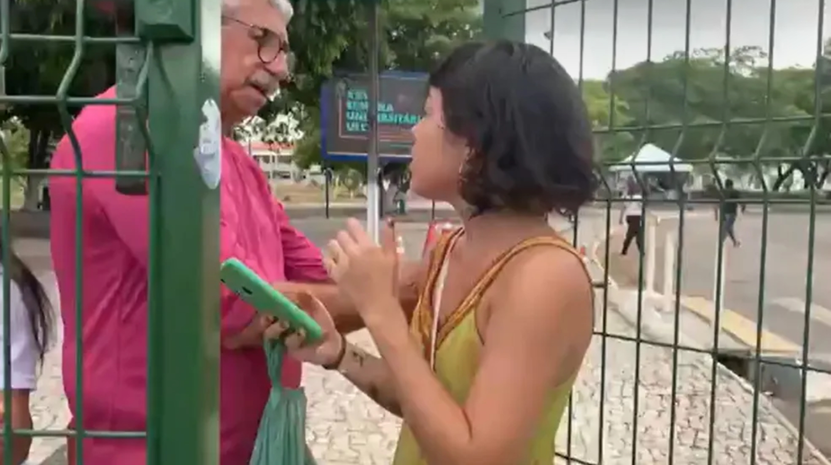 “Eu cheguei faltando 10 minutos, queria entrar no último minuto, inclusive. Trouxe tudo direitinho, documentos, canetas, e aí fui fumar um cigarro aqui fora. Quando faltava um minuto, fui entrar, porque o portão é bem aqui [ao lado de onde ela fumava]. Ia só entrar e o cara não deixou entrar”, relatou a estudante.