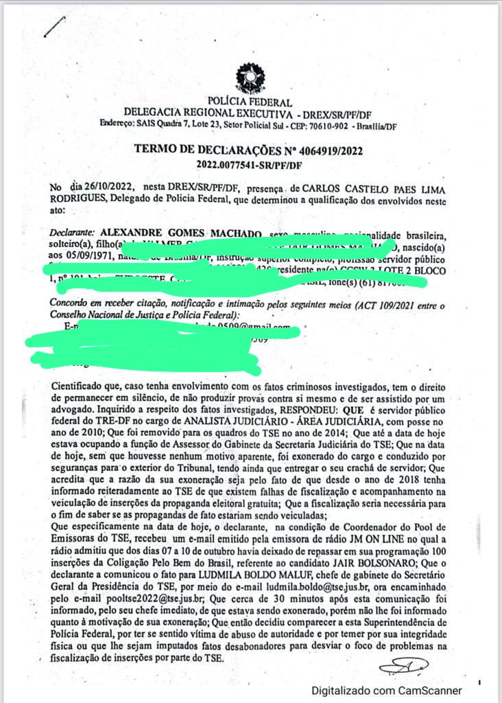 Após a exoneração na manhã desta quarta, o servidor procurou a Polícia Federal para prestar depoimento. Ele disse acreditar que a razão de sua exoneração seja por informar desde 2018 sobre “a existência de falhas na fiscalização e no acompanhamento na veiculação de inserções da propaganda eleitoral gratuita”.