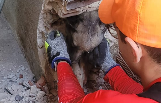 Uma cadela foi resgatada pelo Corpo de Bombeiros Militar do Rio Grande do Norte (CBMRN) após ter ficado presa entre duas paredes em construção no município de Assú.