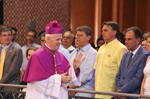 Uma parte aplaudiu e chamou o presidente de “mito”, que logo ouviu-se: “Silêncio na basílica. Prepare o seu coração, viemos aqui para isso”, afirmou o padre. Bolsonaro estava acompanhado de Marcos Pontes, Marcelo Queiroga e Bia Kics.