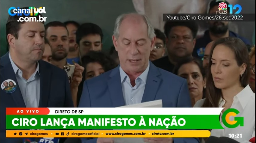 “Minha candidatura está de pé para defender o Brasil em qualquer circunstância, e meu nome continua posto como firme e legítima opção para livrar nosso país de um presente covarde e futuro amedrontador”, disse Ciro.