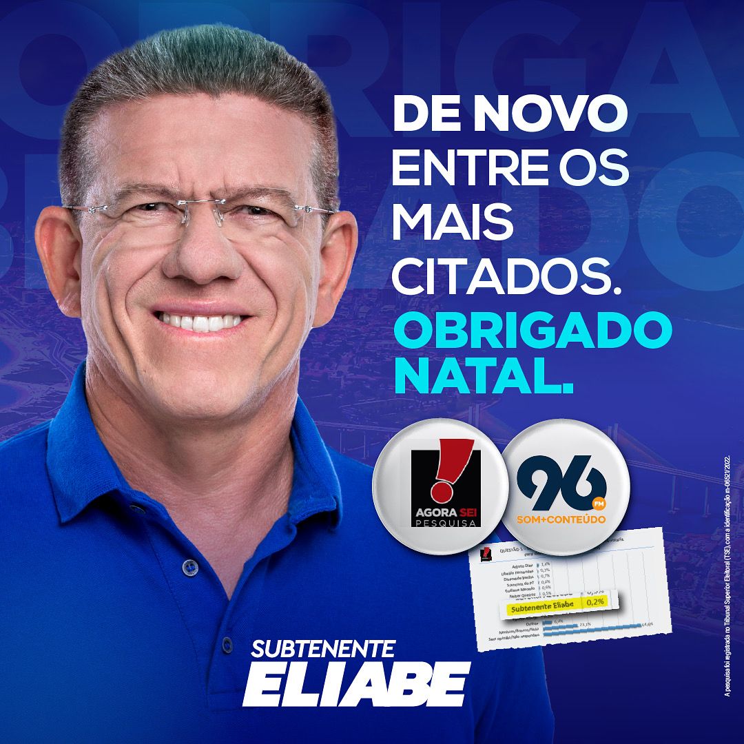 Foi divulgada nesta segunda-feira (1º), os números da pesquisa AgoraSei/96FM, com os candidatos mais citados pelos eleitores de Natal para a disputa pelas vagas na Assembleia Legislativa do RN.