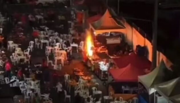 O fogo começou por volta das 21h30, após um vazamento de gás em uma barraca de batata frita, e atingiu também uma barraca de pipoca – ambas pertencentes ao mesmo proprietário.