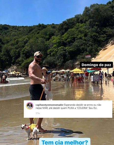 “Esperando decidir se entro ou não nesse MAR, até decidir quem PUXA a “COLEIRA” Sou EU”, tirem suas próprias conclusões.