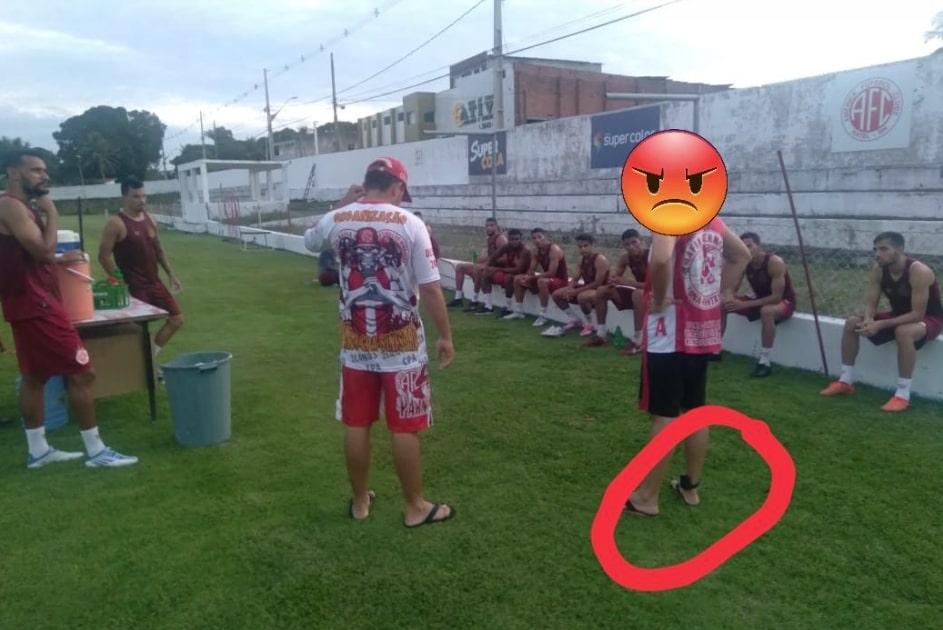Uma imagem foi divulgada com jogadores do alvirrubro sentados e um membro de torcida organizada cumprindo pena sob monitoramento eletrônico dando uma “palestra”, junto de outros que participam da mesma torcida. A expressão de desconforto dos atletas é nítida na foto.