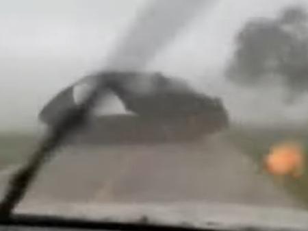 Cochrane gravou um vídeo no qual é possível verificar a força da tempestade no momento em que o veículo a atravessava. É possível ver diversos objetos atravessando a frente do carro.