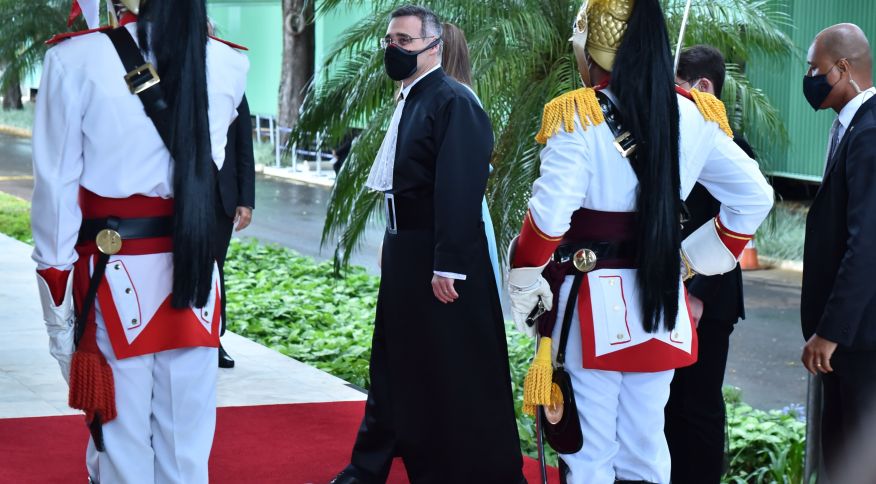 Os ministros Gilmar Mendes e Cármen Lúcia são os dois únicos ministros do STF que não estão presencialmente na cerimônia. Não houve fila de cumprimento ao novo ministro devido à Covid-19, segundo presidente da Corte, ministro Luiz Fux.