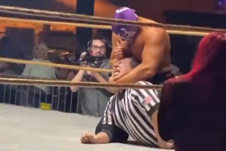 A cena lamentável. ocorreu durante o World Class Pro Wrestling, realizado neste sábado (11/12), na cidade de Irving, no Texas. Hannibal partiu para cima do árbitro após perder a luta para Carlito.