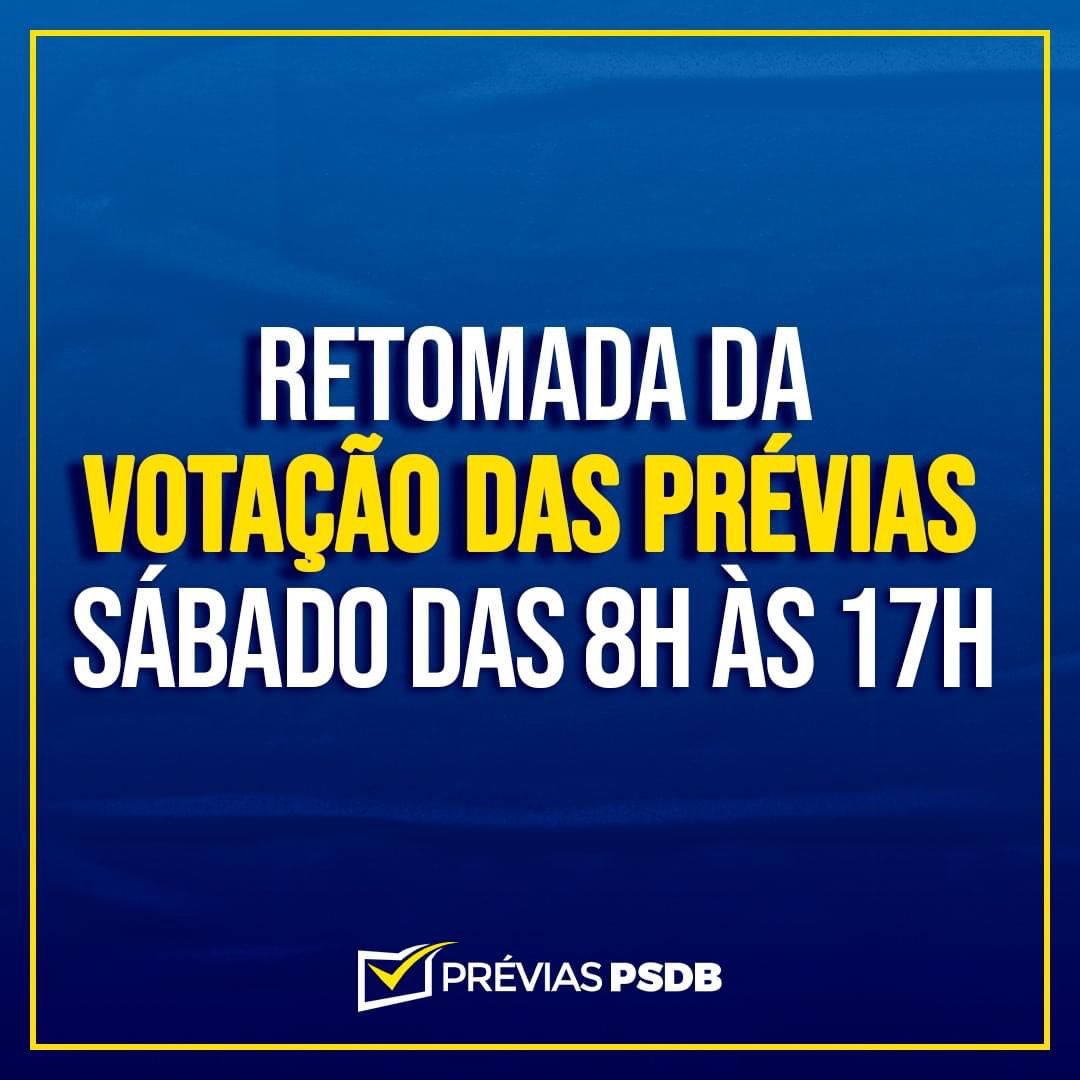 O presidente nacional do PSDB, Bruno Araújo, disse à imprensa que as prévias do partido serão concluídas no mesmo sábado. Até as 20h, o PSDB deve anunciar o seu candidato.
