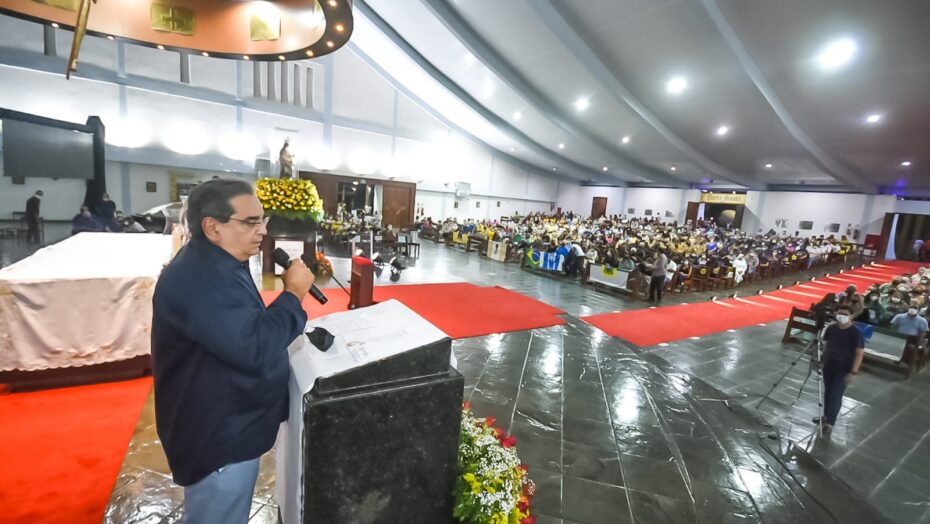 Servidores públicos municipais foram homenageados nesta sexta-feira (19) na penúltima novena alusiva à Festa de Nossa Senhora da Apresentação, na Catedral Metropolitana de Natal. Dedicada à “Maria, mãe da esperança para todos os filhos e filhas de Deus”, a cerimônia religiosa foi celebrada por Dom Magnus Lopes, bispo da Diocese de Salgueiro (PE) e contou com a presença do prefeito Álvaro Dias, da primeira-dama Amanda Grace Dias e secretários municipais.