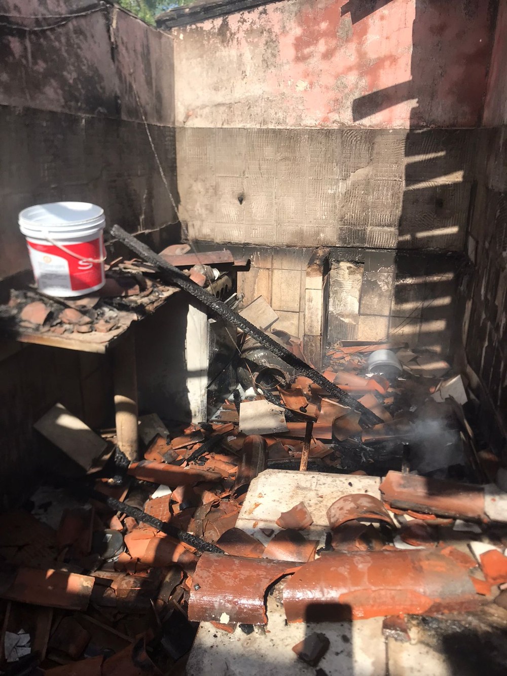 Dois militares foram até o local, na Rua Tabelião Reinaldo Pimenta e tiveram que subir até o telhado da casa utilizando uma escada, quebrar a cobertura e controlar o fogo com baldes de água cedidos por vizinhos.