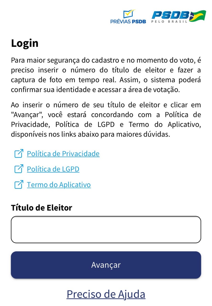 Somente estará autorizado a votar, presencialmenteou online, o filiado do PSDB que realizar o cadastro pelo aplicativo