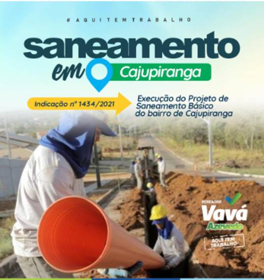 Na Sessão Legislativa Ordinária dessa segunda-feira (08/11), o Mandato do Vereador Vavá Azevedo apresentou a Indicação Parlamentar n° 1434/2021, requerendo ao Poder Executivo Municipal a adoção de providências para conferir CELERIDADE à Execução das obras de Saneamento Básico, no Bairro de Cajupiranga e Loteamentos Sonho Verde, Caminho do Atlântico, Caminho do Mar e Jardim Blumenau, onde estão pendentes a continuidade do Projeto.