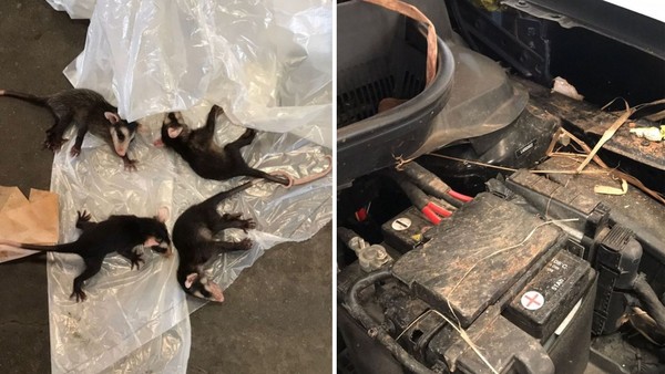 Uma moradora de São Roque (SP) descobriu que seu carro era a “casa” de seis filhotes de gambá ao levar o veículo para fazer reparos em um concessionária da cidade.