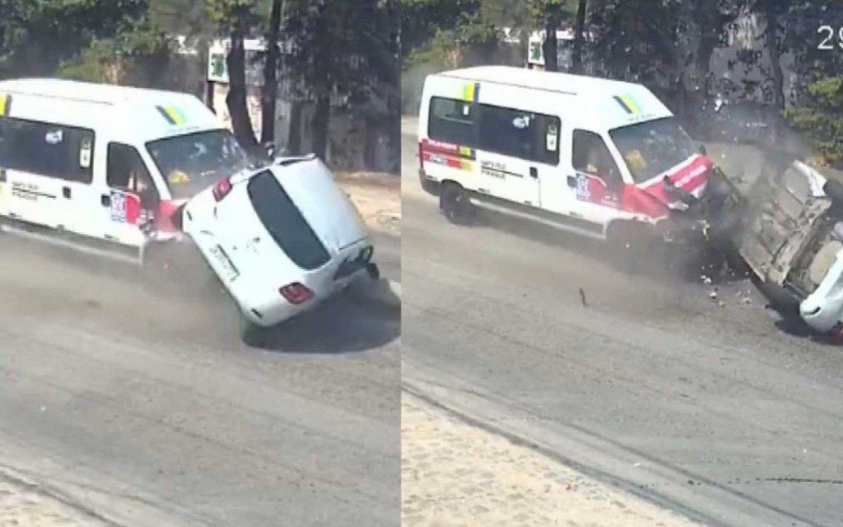 A batida aconteceu após o carro fazer uma manobra irregular e bater na van.