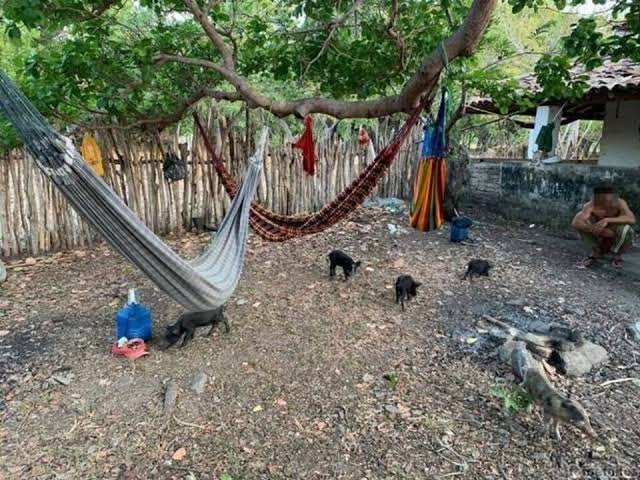 No local, não havia a existência de dormitório adequado, já que os homens dormiam em redes na parte externa da casa e embaixo de um cajueiro, perto de onde vivem os animais.