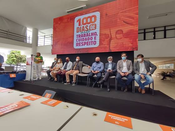 A governadora Fátima Bezerra (PT) deu início, na tarde desta segunda-feira (27), a coletiva de imprensa relativa aos mil dias de gestão. Entre os pontos mais ressaltados pela governadora estão o pagamento das folhas salariais em dia, leitos abertos durante a pandemia de coronavírus e a convocação de policiais militares para o efetivo da corporação. O evento acontece no centro administrativo e reúne uma série de secretários, dirigentes e gestores que compõem o governo Fátima Bezerra.