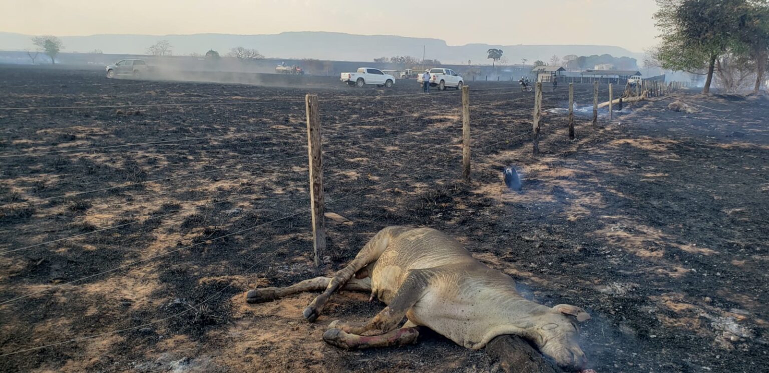Em Mato Grosso, um incêndio causou prejuízos em propriedades rurais e matou dezenas de cabeças de gado. A região afetada pelo fogo enfrenta uma estiagem há mais de 120 dias.