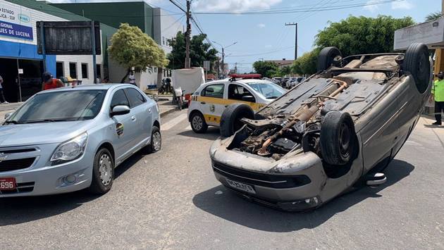Um carro capotou após a batida com um táxi, na manhã desta sexta-feira (10) em Parnamirim, na região metropolitana de Natal. Ninguém ficou ferido.