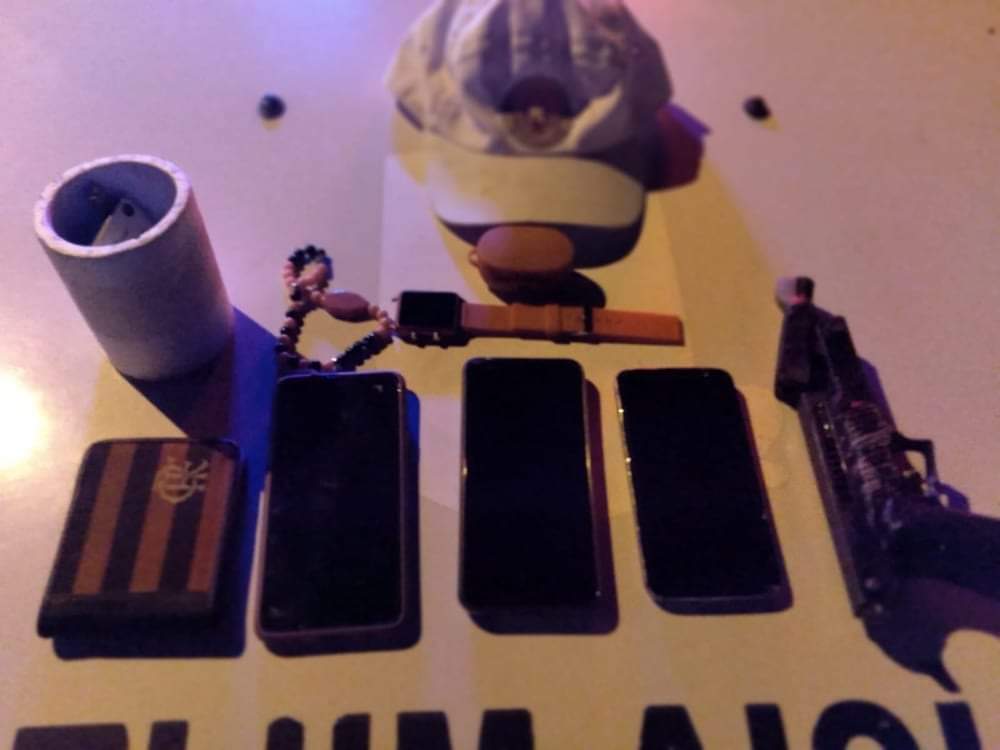 Na posse de informações e características, a equipe deparou-se com o citado veículo, que tem placas MZF-8055 e passou a acompanhá-lo taticamente, sendo feita a interceptação e seus ocupantes abordados. Na vistoria foi encontrada uma arma e objetos frutos de roubos.