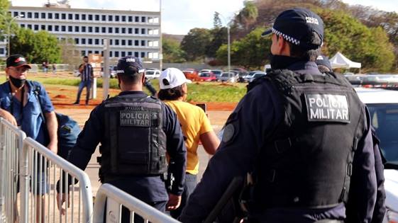 Por volta das 15h, um grupo de manifestantes discutiu com pessoas que criticavam o movimento, à margem da via, na altura do Ministério da Economia. A PM interviu, usando spray de pimenta. Em seguida, alguns participantes do ato jogaram pedras na direção dos policiais.
