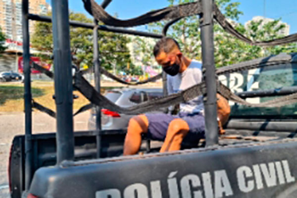 O homem de 28 anos cumpria pena com o uso de tornozeleira eletrônica e rompeu o equipamento. Os policiais apuraram uma denúncia de que ele guardava, inclusive, um fuzil em casa, mas esse armamento não foi achado.
