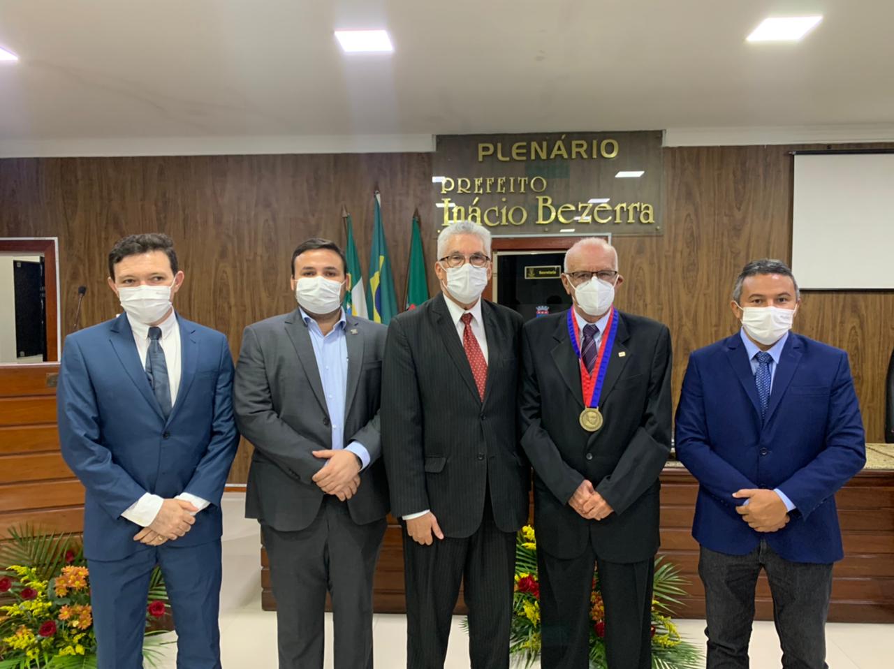 O presidente da Câmara de Vereadores de Caicó, Ivanildo do Hospital e os vereadores Renato Saldanha, Preto Costa e professor Veranilson, além do prefeito Dr. Tadeu, estiveram presentes na solenidade de entrega da medalha Amaro Cavalcante concedida ao advogado e professor José Aranha Sobrinho.