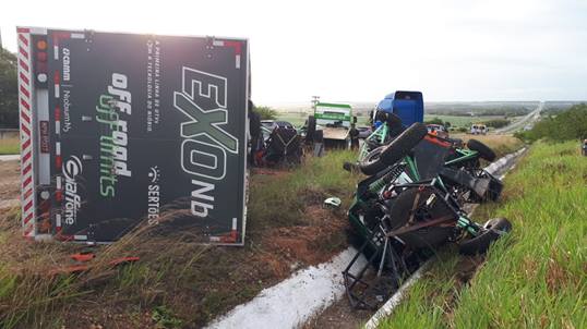 Segundo informações os veículos que o caminhão trator transportava ficaram avariados por causa do acidente e não conseguirão ser utilizados na largada do evento, marcada para o próximo sábado (13), na Praia de Pipa, no município de Tibau do Sul. Os modelos danificados pertencem à equipe Giaffone Racing. Com informações da Tribuna do Norte