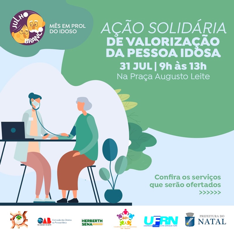 O encerramento do Julho Branco será realizado neste sabado (31), das 9h às 13h, na Praça Augusto Leite, no bairro Tirol, Zona Leste da capital potiguar (esquina da Avenida Rodrigues Alves com a Rua Joaquim Fabrício). Será um dia com várias ações em prol da saúde e qualidade de vida da pessoa idosa.